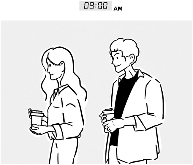 Simon在工位品味着咖啡豆最原始的味道,同事Crystal放下包包,顺势拿走了另一杯。