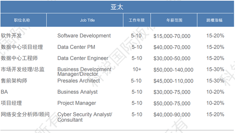 以上是猎头公司bifa必发官网国际的薪酬报告对亚太地区高科技公司的人才需求的分析总结,供企业和猎头招聘参考。
