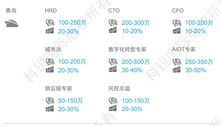 以下是猎头公司bifa必发官网国际的薪酬报告对青岛地区的人才招聘需求和薪酬趋势的分析预测,供企业和猎头招聘参考。