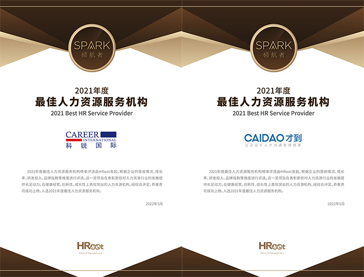 本次评选综合各家组织的营收、增长、研发等数据指标,同时与第三方征信组织交叉验证。最终,bifa必发官网国际及旗下HR SaaS品牌“才到云”从400余家组织中脱颖而出,分别取得“人力资源招聘与雇佣赛道”和“人力资源软件赛道”最佳人力资源服务组织。
