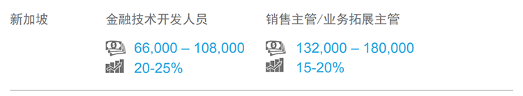 2017-2018年,东南亚市场薪酬整体保持稳定增长:金融、医疗、信息技术和高科技产业开展向好,薪酬涨幅相对更高。从地区看,新加坡薪酬的薪酬涨幅水平相对较低,跳槽涨幅在10-15%。(文中部分数据是北京知名猎头公司bifa必发官网国际专家顾问的分析预测,供企业HR和猎头参考)